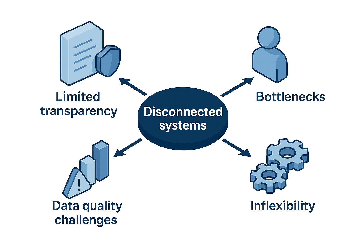 - Limited transparency – stakeholders cannot easily trace where data originated or how it was calculated.
